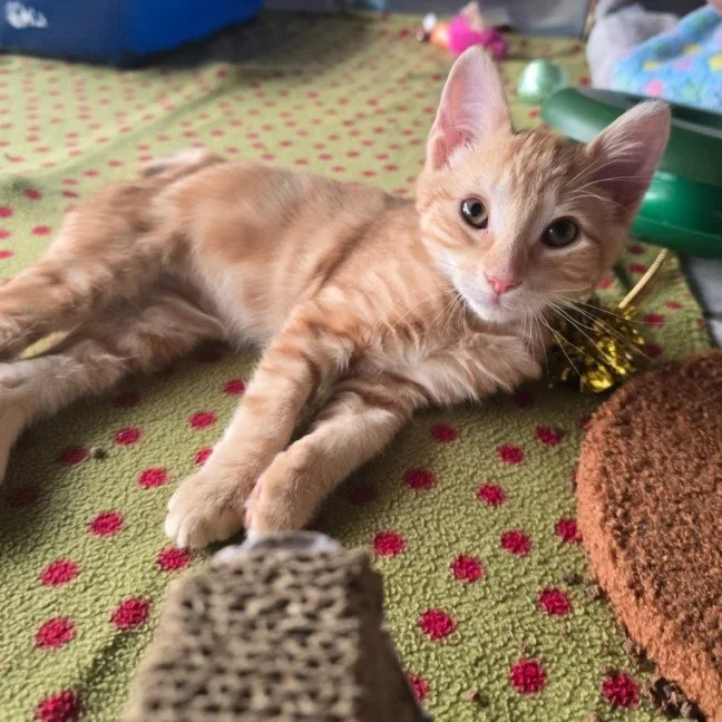 Rusty is a sweet kitten, gentle and agile she is ready for fun. Her sweetness is amplified when she settles into your lap for cuddles or a nap.